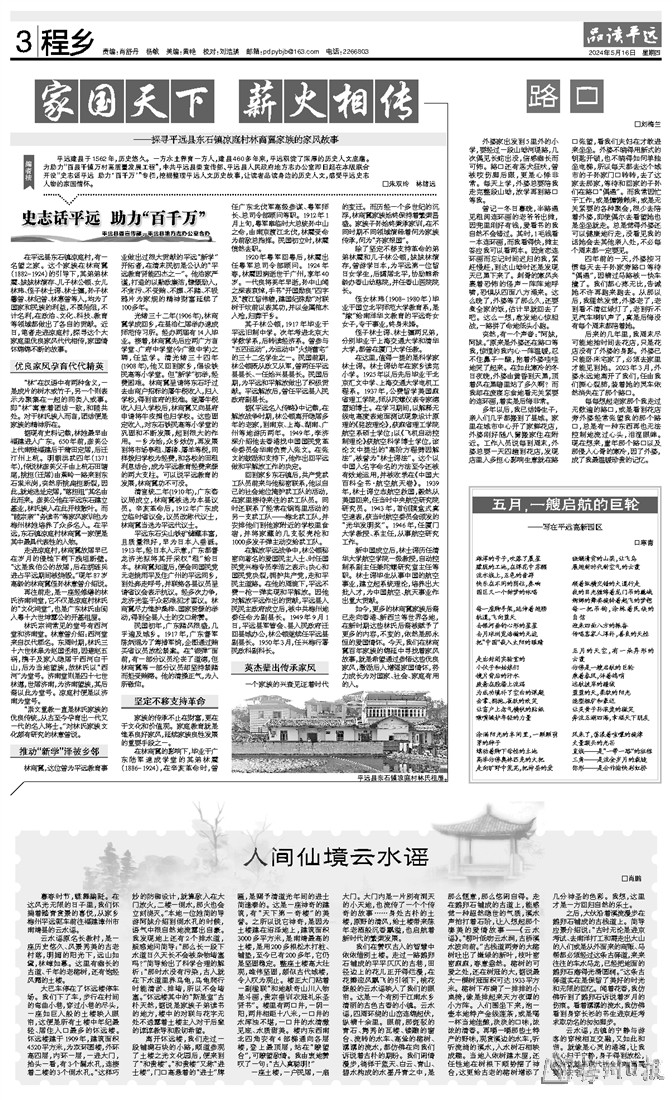 在平远县东石镇凉庭村,有一名望之家。这个家族在林商翼(1882-1924)的引导下,其弟弟林震、妹妹林演存、儿子林公顿、女儿林玮、侄子林士谔、林士骧,孙子林馨曾、林纪曾、林惠曾等人,均为了国家和民族的利益,不畏险阻,不计名利,在政治、文化、科技、教育等领域都做出了各自的贡献。近日,笔者走进凉庭村,探寻这个大家庭里优良家风代代相传,家国情怀绵绵不断的故事。