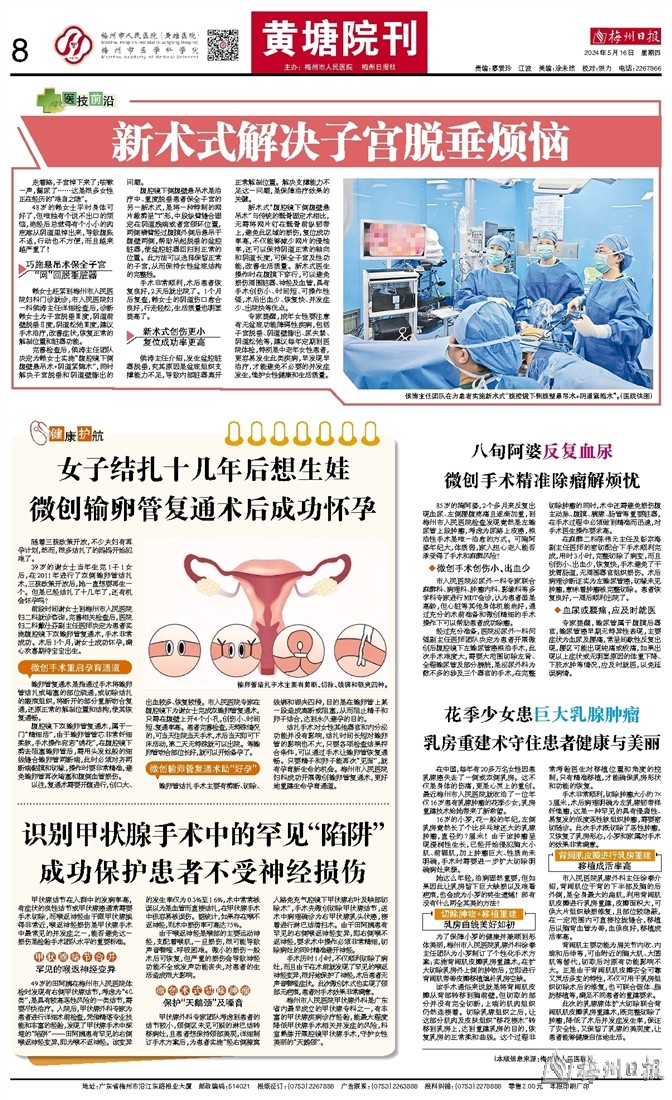 结扎手术对女性其他器官和内分泌功能并没有影响,结扎时间长短对输卵管的影响也不大,只要各项检查结果符合条件,可以通过手术让输卵管恢复通畅。只要精子和卵子能再次“见面”,就有孕育新生命的机会。梅州市人民医院妇科成功开展微创输卵管复通术,更好地重建生命孕育通道。