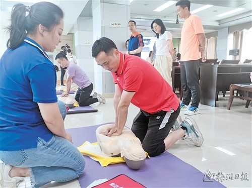 “虽然以前对应急救护知识有一定了解,但操作上只能靠想象。这次有专家讲解理论知识并现场教学,更重要的是自己上手了,感觉收获满满。”梅雁中学体育老师王汉义告诉记者,老师需要熟练掌握应急救护技能,一旦发生意外,能够在救护车到达之前为学生生命争取更多时间。
