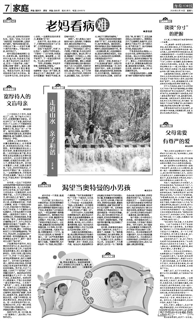有时候,英雄情结也确实起到了榜样作用,当他不小心摔倒了,我提醒一句:“奥特曼也经常摔跤,他们都很勇敢,哭一会儿,等不疼了就不会再哭了。”在痛劲儿过后,他便会立马止哭。当他生病了,不太愿意吃药,这时说一句:“奥特曼也会生病,但他很勇敢,药再苦都能很快咽下去。”还没说完,药就吃完了……但有时也会因他所谓的英雄情结而啼笑皆非,比如他调皮做错事,我批评他时,他还举起他的小拳头对我怒目相视,施展他的“英雄抱负”,这时我正好借机对他进行一番真英雄、做好事的教育。