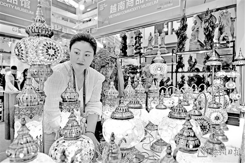 5月19日,在第八届中俄博览会现场拍摄的工艺品灯。