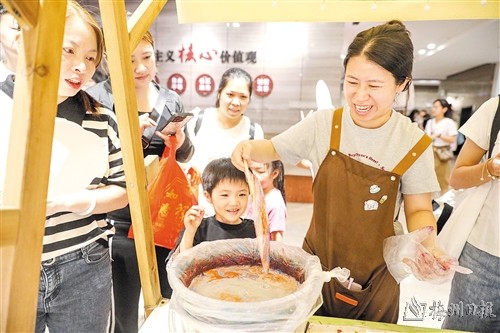 展厅里,一张张照片,一幅幅图表,一件件实物,凝结着客家人的智慧和力量;互动区,一个个摊位,一件件产品,一组组创作,见证着人们在文化传承中不断探索、出新出彩。作为国家一级博物馆,中国客家博物馆不断加强文物价值挖掘阐释,全面展示客家民系文化渊源与发展,系统收藏、整理、研究、展示客家历史文物与客家民俗文物,同时推动博物馆教育职能向多元化扩展,进一步拉近与观众的距离。