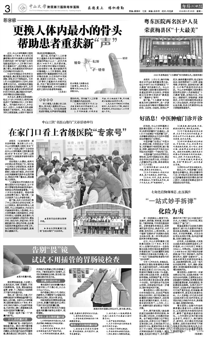 现在,有一款无创、无痛、不打麻醉也能进行的胃镜检查利器可以解决上述问题。目前中山大学附属第三医院粤东医院(以下简称:粤东医院)消化内镜中心已全新升级装备,引进市面上最小、图像高清且具有实时监控的“胶囊内镜”。