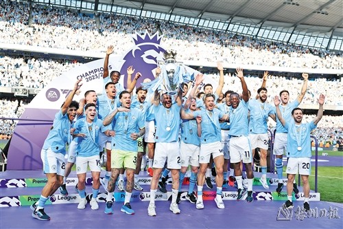 据新华社伦敦5月19日电 曼城19日在本赛季英超最后一轮较量中3∶1击败西汉姆联,史无前例地成就了英超四连冠的伟业。