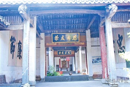 中厅两侧挂着每字大约两平方米独自成幅的“忠孝廉节”四个大字,此乃南宋哲学家、教育家朱熹题赠长沙岳麓书院的碑刻,其运笔厚重,气势非凡。据说是氏族长辈从潮州复制、珍藏的镇堂之宝,也是屋主人教育、鞭策后人的座右铭。这些富含文化内涵和思想启迪的文字,使得整座老屋更加书香浓郁,门第高雅。