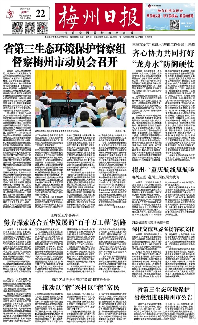 王晖强调,五华县要加压奋进、加力提速,落实典型镇村建设的10大硬任务、10大硬指标,以头号工程力度扎实推进“百千万工程”,努力探索一条适合五华发展的新路,实现“百千万工程”考核排位前移、力争优秀。要坚持高起点规划,加快完成以县城为重要载体的新型城镇化规划编制,分步打造、重点突破推进美丽圩镇“七个一”建设,加快典型镇村示范路段和精品线路建设。要坚持把产业发展放在首位,集中精力打造“智能制造、新型储能”主导产业,大力发展特色产业,特别是要因镇制宜加快布局产业园区,加快发展县域经济。要用足用好《梅州方案》、省《若干措施》和专项债、中央预算内投资、超长期特别国债等政策,做实做细项目前期工作,加大对接力度,争取中央和省财政更大资金支持。要围绕“山上山下”,突出“四旁”“五边”,立足实际、广泛发动,狠抓县城、圩镇、村庄、示范路段绿化。要围绕“良田连片、村庄集中、产业集聚、生态优美”目标,深化落实全域土地综合整治“1+3+N”政策,腾挪整合村庄建设用地,着力破解农村建设用地紧张、资源闲置低效、要素流动不畅等难题。