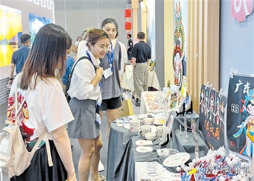 在梅州馆参观时,来自新疆的温慧竹被这些广东汉剧衍生品“种草”。“很可爱,每一个都想拥有!”温慧竹说,她奶奶是梅州人,从小听着奶奶讲述梅州故事,听着客家话长大,梅州馆的这些客家文创产品让她倍感亲切,一定要找时间到梅州走一走、看一看。