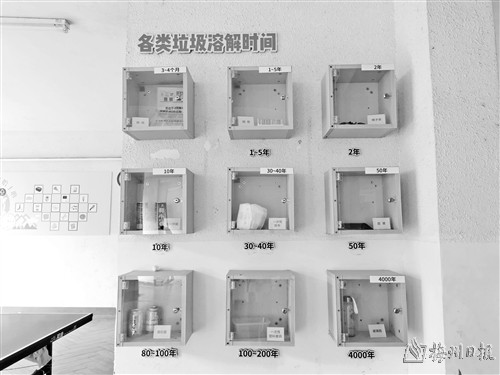 “你看,垃圾中的可回收物包括我们喝矿泉水扔掉的瓶子,还有装奶粉的罐子……”近日,在梅江区江南街道鸿都社区帝景湾小区的垃圾分类宣传长廊里,一位家长正带领着小孩识别可回收物类别。记者看到,该小区的宣传长廊设置有垃圾分类及可回收物指引图、类型详解图及实物展示,令人一目了然。不仅如此,宣传长廊还有垃圾分类飞行棋等趣味游戏,并设置有各类垃圾溶解时间展示柜、儿童垃圾分类画作展示区等,小区居民可以玩中学、学中玩,垃圾分类知识以更生动有趣的形式入脑入心。在小区大门口、居民楼下,则配置了可回收物回收驿站和可回收物智能箱,智能箱可实时了解可回收物价格、完成回收交易,方便住户收集处理。