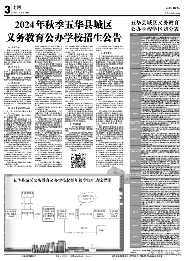 (四)在报名入学过程中如有疑问,请参考《五华县城区义务教育公办学校学位申请问答》,未提及的问题可联系拟报读学校咨询,各校招生计划和咨询电话详见《五华县城区义务教育学校招生信息表》。县教育局业务咨询电话:0753-4432680,监督电话:0753-4437940。