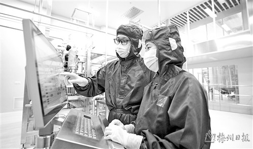 在北方药谷德生生物医药产业园一期抗体原液车间,工艺工程师研究讨论气体流量问题。