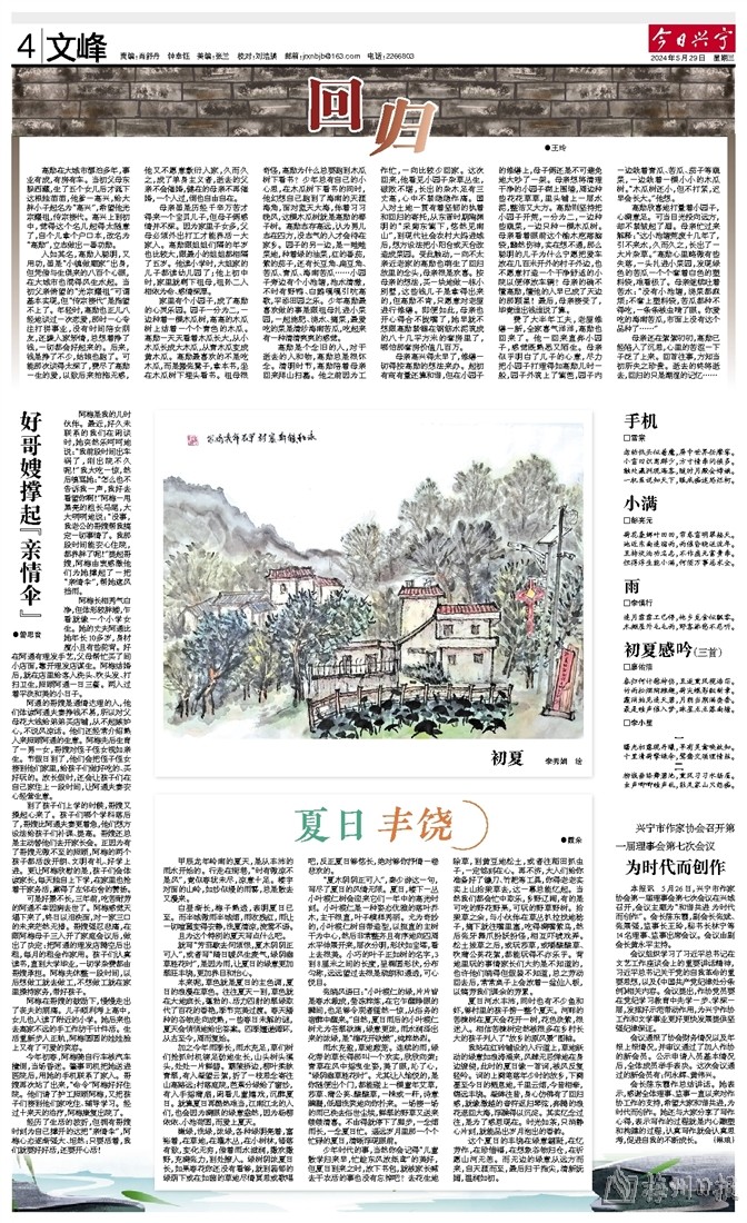 这个夏日的丰饶在绿意翩跹,在忆劳作,在珍惜福,在想象谷物归仓,在祈愿山河无恙。而无边的绿意从远方而来,自天涯而至,最后归于指尖,清新妩媚,温润如初。
