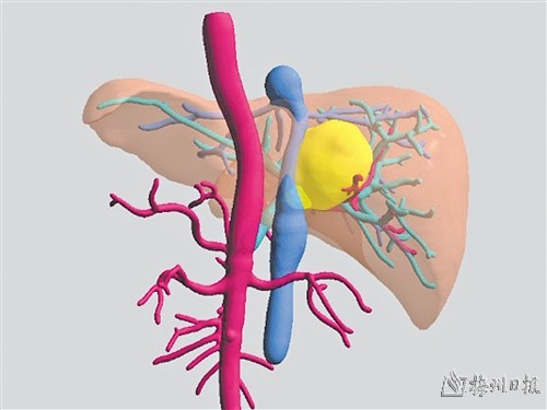 徐继威介绍,3D数字化重建技术使得外科医生的双眼能够“透视”肝脏,提供了一个全新视野,为精准切除提供了强大的支撑。精准的定位,巧妙的入路方式,精细的操作,是手术成功的关键。