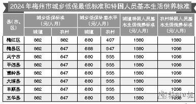 本报讯 (记者朱绮辉)记者近日从市民政局获悉,为落实省民政厅以及2024年省、市十件民生实事任务要求,5月28日,经市政府同意,我市印发《2024年梅州市城乡低保最低标准和特困人员基本生活供养标准的通知》(下称《通知》),从2024年1月1日起实施,有效期为两年。