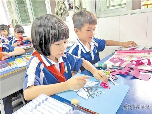 记者看到,此次美术展分为五个内容:夏日里的童画、自制手绘扇面、创意拼贴画、童趣系列立体手工作品、中华有龙纸盘艺术秀等。学生们在美术展的前两周就开始铆足劲头准备,有的在扇面细细勾勒喜爱的图画,有的在卡纸上粘贴上彩色的线条和图案,有的制作了帽子,有的制作了捧花……创意十足,有趣美观。该校美术老师刘萍表示,此次活动不仅激发了学生们的艺术细胞,也提高了他们的动手能力和审美能力。在美术展展览期间,每天都吸引了无数学生驻足观看,形成学校一道亮丽的风景线。(黄宝珠)