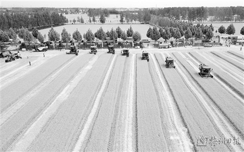 当日,山东省“三夏”生产开机暨小麦机收减损技能大比武启动仪式在山东临沂郯城县举行,标志着山东省6000多万亩小麦陆续集中收获。(新华社发)