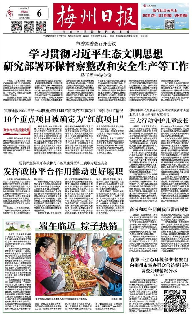 本报讯 (记者李盛华)根据《梅州市重点项目和招商引资“红旗项目”“蜗牛项目”通报工作机制》,市委办公室、市政府办公室日前通报2024年第一季度重点项目和招商引资“红旗项目”“蜗牛项目”情况。