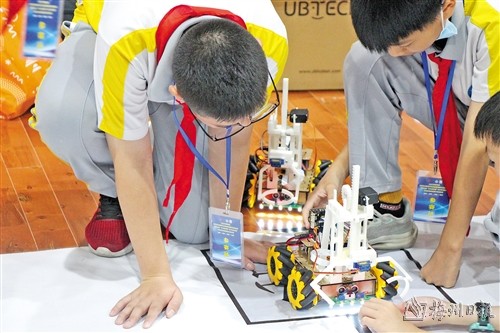活动现场,选手们结合日常训练和知识积累经验,全神贯注开展“机”智比拼,运用程序设计、人工智能、物联网等技术工具,接连完成各种活动器材的拼装、编程、调试,设计和创作出一系列具有创新性和实用性的作品。据主办方介绍,此次活动设置创作类、实践类、展示类三大类别,涵盖数字创作、计算思维、科创智造、智能机器人、无人机、物质科学、生命科学、天文、人工智能等多个领域。