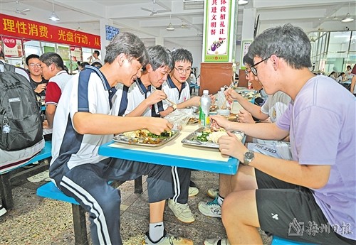 傍晚时分,是高三学生的休息和吃饭时间。走进人声鼎沸的食堂,高三学子三三两两围聚一桌,他们聊梦想,互相打气,其乐融融,也有学生在简餐过后,早早回到教室做题。