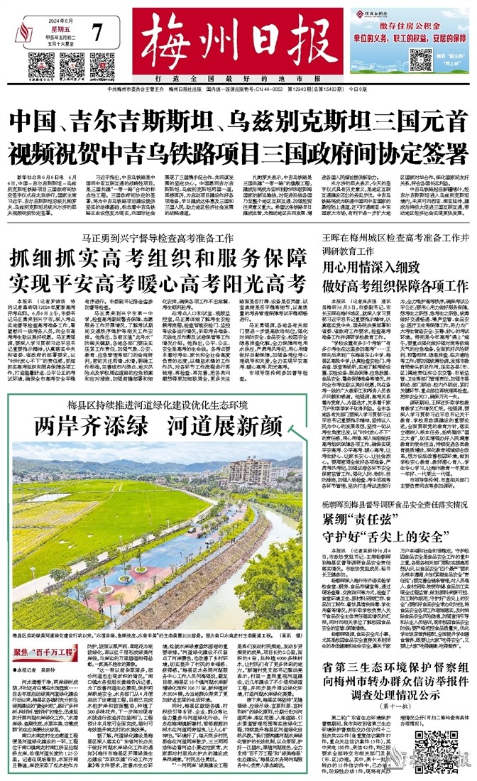 “学校设置有多少个考场”“有多少考生在这里参加高考”……王晖先后来到广东梅县东山中学、梅县区高级中学,认真检查安检门、考务室、饭堂等场所,实地了解考场设置、安检设备、服务保障、应急救援、食品安全、警务保障准备等情况,并向全市考生致以美好祝愿,向在备考一线的广大教职工和考务人员表示问候和感谢。他强调,高考关系着为党育人、为国选才,关系着千家万户和莘莘学子切身利益。全市各地各有关部门要深入学习贯彻习近平总书记重要指示精神,坚持以人民为中心的发展思想,坚持一切从考生角度出发,以“时时放心不下”的责任感,用心用情、深入细致做好高考组织保障各项工作,确保实现平安高考、公平高考、暖心高考,让考生舒心、让家长安心、让社会放心。要周密周全做好各项准备,严肃考风考纪,加强试卷各环节安全保密监管工作,强化人防、物防、技防措施,加强入场检查、考中巡视等各环节管理,坚决打击考试违规行为,全力维护高考秩序,确保考试公平公正;要用心用力做好服务保障,想考生之所想、急考生之所急,统筹做好交通畅通、噪声监管、食品安全、医疗卫生等保障工作,努力为广大考生营造安全、安静、舒心的考试环境。特别是今年高考“遇上”端午,要重点强化做好强对流等极端天气的应急准备,全面抓好风险研判、预警预报、隐患排查、临灾避险等工作;要加强统筹协调,发挥市教育局牵头抓总作用,压实各县(市、区)属地责任和公安交警、市场监管、卫生等部门管理责任,加强市县联动、部门联动、校内外联动,紧盯关键环节、重点部位再梳理再检查,把牢安全关口,确保万无一失。