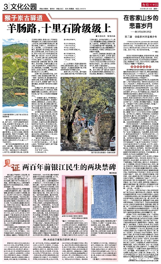 往事越千年,猴子岽古驿道上多少官宦商贾、挑夫行人来来往往、熙熙攘攘的情景,如过眼烟云,湮灭在旧日时光里,留下给人们的典故诗篇寥寥无几。