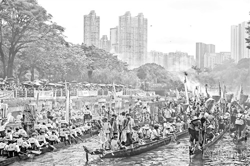 6月10日,四里八乡的龙舟汇聚在猎德涌参加“龙船景”。“龙船景”是广府地区水乡在端午期间举办的一种民俗活动。