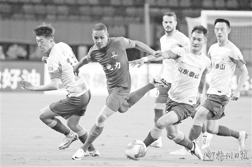 本报讯 (记者叶子通)6月14日晚,中超联赛第15轮,梅州客家坐镇主场五华县惠堂体育场,迎战来访的山东泰山队。双方鏖战90分钟不分胜负,梅州客家和山东泰山战成 0∶0,两队各获得1分。