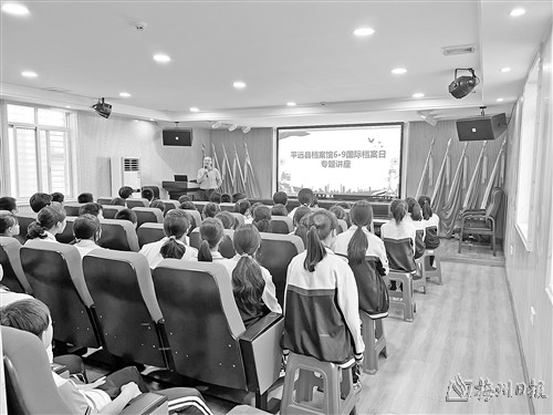 当天下午,县档案馆组织60多名群众、师生代表参加了以“国际档案日专题解读”为主题的专题讲座。通过专题讲解档案知识、观看经典档案宣传片《逐梦兰台》等方式,进一步让群众、广大师生理解档案是国家和社会的宝贵财富,依法保护档案是一切组织和公民应尽的责任和义务,增强档案意识。同时,县档案馆还邀请社会各界人士、各级师生共计200人次参观爱国主义教育基地、档案库房、档案查阅室、特藏室等,充分发挥档案工作“存史资政育人”的重要作用,勇担新时代新的文化使命。
