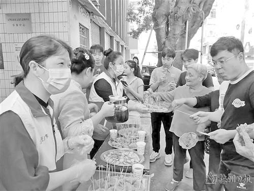 活动中,志愿者们向群众派发粽子,为他们送去端午祝福的同时,还向孩子们普及了端午节知识,包括端午节的由来、习俗和传说故事等,传达了端午深厚的历史底蕴与文化内涵,营造了浓厚的节日氛围。