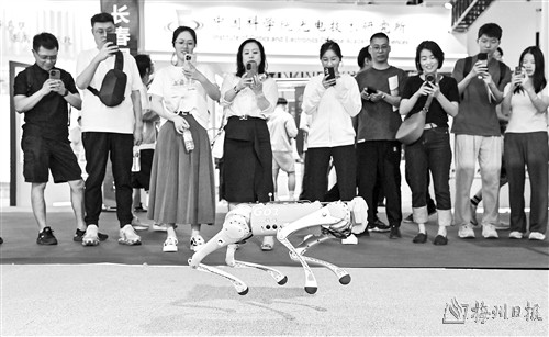 6月18日,观众在2024长春国际光电博览会上参观机器狗。