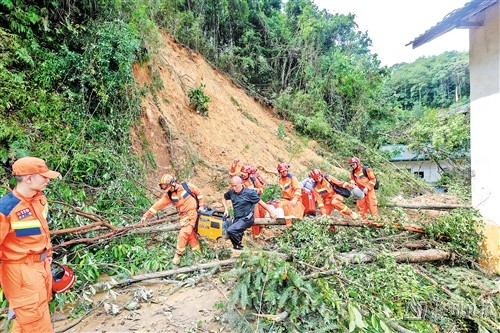 “我们17日下午一点半从肇庆、河源、韶关同时机动到平远,一共出动了320人、20辆车前来支援。现在主要是在2个乡镇、10个自然村进行道路疏通、人员搜救、伤员转运、物资投送等救援工作。”18日,国家消防救援局广东机动队伍一名队员告诉记者,他们已经连续24小时以“车轮战”方式作业,目前有190名指战员在一线救援。