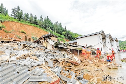 强降雨持续,平远县泗水镇发生多处山体滑坡,道路受阻,通信一度中断。为争分夺秒救援被困人员,消防人员等救援队伍徒步进村抢险。“我们徒步12小时,17日下午4时许到达泗水镇大新村。”梅州市消防救援支队白渡特勤站消防员周桢武说,他们于17日凌晨4时结束在平远县东石镇的救援工作后,接到通知徒步前往泗水镇开展救援。据介绍,前往泗水镇的先锋队共7人,途经东石镇时,他们还解救了一名因山体滑坡被困半山腰的路政人员。