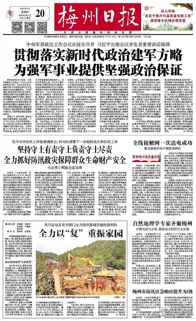 受持续性强降雨影响,平远、蕉岭、大埔、梅县等地发生道路冲毁、供水电力通信中断等险情灾情。连日来,各有关部门和当地党员干部通力合作,全力组织基础设施抢修排险。目前,大部分受灾地区已经恢复供水、供电、通信,部分受阻道路已被抢通,部分受灾乡镇的干部群众已着手开展灾后清理消杀工作。