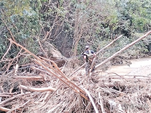 南磜镇是此次受灾最严重的乡镇之一,山体滑坡、泥石流导致多处道路交通和通信中断,救援难度相当大。其中,三泰村立禾畲片灾情发生后便一直与外界失联。立禾畲片地处偏远,距离南磜镇圩镇十多公里,从三泰村村委会出发也有3公里远的路程,但平日通行的村道因灾已遭水毁,车辆无法通行。6月19日上午,罗建锋接到救援任务:带人进入立禾畲,摸清受困人员情况,并为救援直升机寻找降落点。