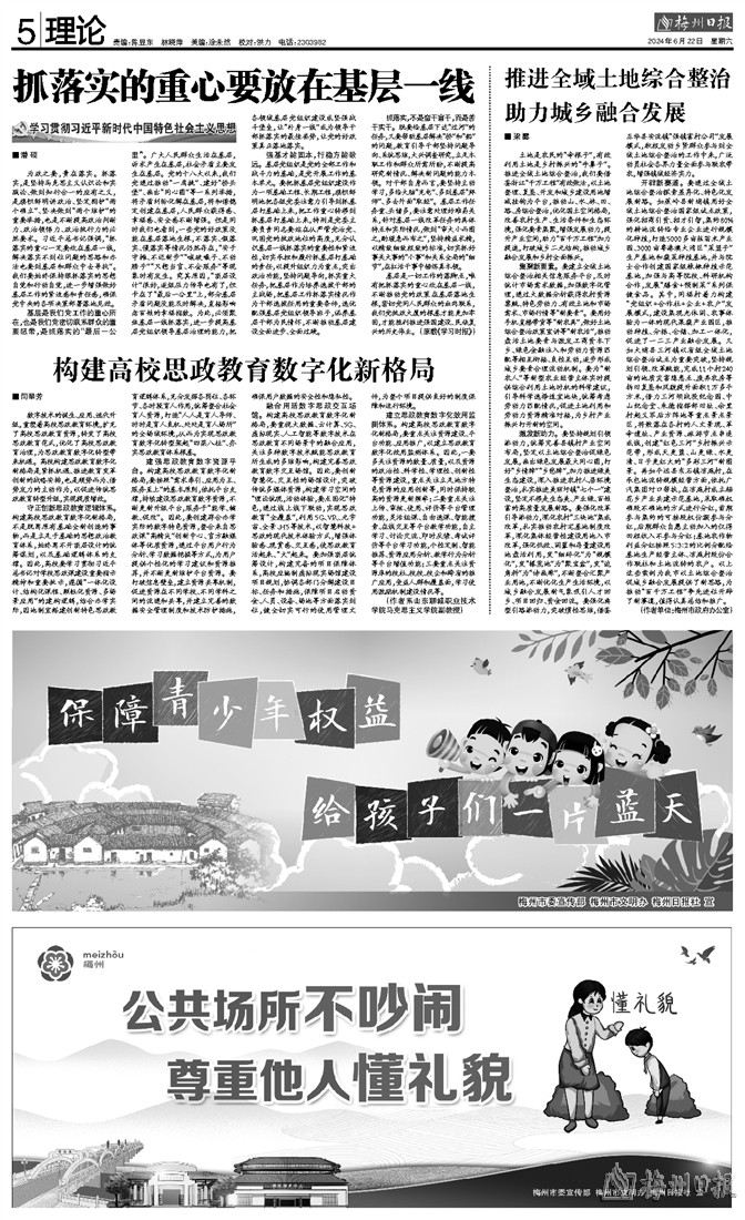 开辟新赛道。要通过全域土地综合整治探索差异化、特色化发展新路。如蕉岭县新埔镇用好全域土地综合整治国家级试点政策,强化招商引资、招才引智,集约80%的耕地流转给专业企业进行规模化种植,打造5000多亩丝苗米产业园、3000亩粤港澳大湾区“菜篮子”生产基地和蔬菜种植基地,并与院士合作创建国家级辣椒种植示范基地,加强与高等院校、科研机构合作,发展“膳食+预制菜”系列保健食品。其中,同福村着力构建“党组织+合作社+企业+农户”发展模式,建设集观光休闲、农事体验为一体的现代果蔬产业园区,推动种植、分拣、仓储、加工一体化,促进了一二三产业融合发展。又如大埔县三河镇以省级全域土地综合整治试点为重要突破,坚持规划引领、改革赋能,完成11个村240亩的地质灾害隐患点、废弃农房等拆旧复垦和风貌提升面积1万多平方米,借力三河坝战役纪念园、中山纪念堂、朱德指挥部旧址、余里村起义军后方阵地等重点景点景区,将散落在各村的人文景观、革命遗址、产业资源、旅游节点串连成线,创建“红色三河”乡村振兴示范带,形成天更蓝、山更绿、水更清、日子更红火的“多彩三河”新图景。再如平远县东石镇凉庭村,在承包地流转规模经营方面,依托广汽集团对口帮扶,在凉庭村成立稻花乡产业共建示范基地,采取确权确股不确地的方式进行分红,首期参与集约的可按股权份额参与分红,后期群众自愿主动加入的仅得田租收入不参与分红;基地农作物利益分红按照5∶3∶2的比例分配给基地生产经营主体、凉庭村股份合作联社和土地流转的农户。以上这些案例为我市以土地综合整治促城乡融合发展提供了新思路,为推动“百千万工程”争先进位开辟了新赛道,值得认真总结和推广。