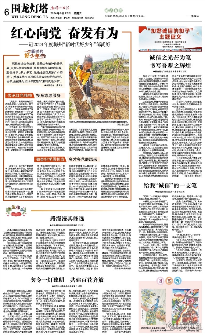 “各美其美,美人之美,美美与共,天下大同。”费孝通先生的十六字箴言,留给我们青年多少启示?“看漫江碧透,百舸争流”,站在新起点的船头,我辈弄潮儿当迎时代大潮,在良性竞争中携手并进,共建百花齐放的美好新世界!(指导老师:管庆蓉)