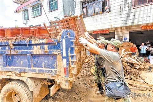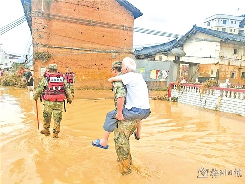 一方有难八方支援,积合力以制胜。梅州军分区充分调配所属人武部力量赶赴受灾严重地区支援。