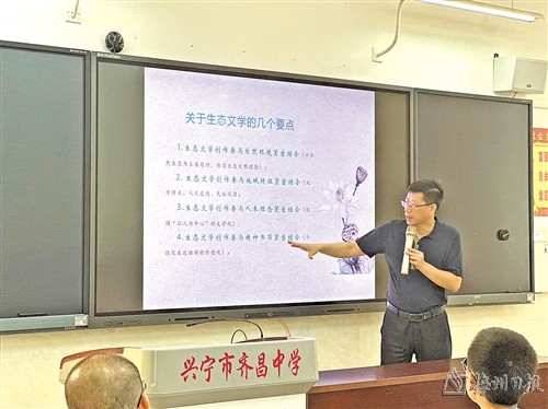 本报讯 6月19日上午,由梅州市生态环境局兴宁分局、梅州市文艺志愿者协会、梅州市作家协会、兴宁市教育局、共青团兴宁市委员会联合主办的青少年生态文学创作公益讲座走进兴宁市齐昌中学。