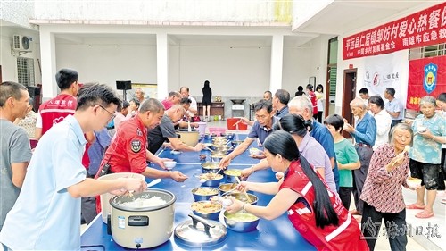 危急时刻,爱心汇聚。驰援平远的南雄市应急救援协会资助仁居镇邹坊村设立了爱心热餐餐厅,平远县幸福农庄老板黄惠每天往返仁居镇、上举镇、泗水镇等受灾严重的乡镇,给受灾群众运送爱心餐和物资,只为让受灾群众能吃上一口热乎饭。