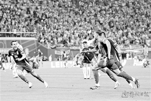此后比赛呈胶着之势,直至全场补时最后一分钟,意大利队上演极限“逃生”的戏码。卡拉菲奥里带球前插后分球左翼,无人看防的扎卡尼禁区左侧接球,右脚弧线球打进球门右上角,意大利队扳平比分,惊险晋级16强。
