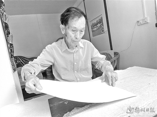 刘可为告诉记者,过去兴宁地区版画风靡,对于原本画油画的自己有很大的影响,而与版画结下不解之缘是因为罗映球先生的培训班,一个月的系统学习,让他爱上了这门艺术。“以前上班闲暇刻,一边晒谷一边刻,妻女的支持给了我更多的空间坚持热爱这么多年。”刘可为说。