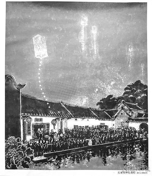 回想自己与罗映球先生亦师亦友的情谊,刘可为说,过去自己时常画好了草稿就跑过两条街去罗映球先生家请教,“有一次是12月天气特别冷的时候,我白天去先生家请教,先生改了许久,满意了我就带着草稿回家了。结果到了晚上12点多,我家电话响了,是先生打过来的,当时我们都以为他是想知道当天球赛的结果,没想到他说今早的画,他想起来还有一些地方要改,怕今晚不及时说明天就忘了。”正是这般的钻研热爱,成就了画作《元宵又升孔明灯》,而罗映球先生的精神也影响了他许久。后来,他也开办培训班,将这些故事讲给自己的学生们听。