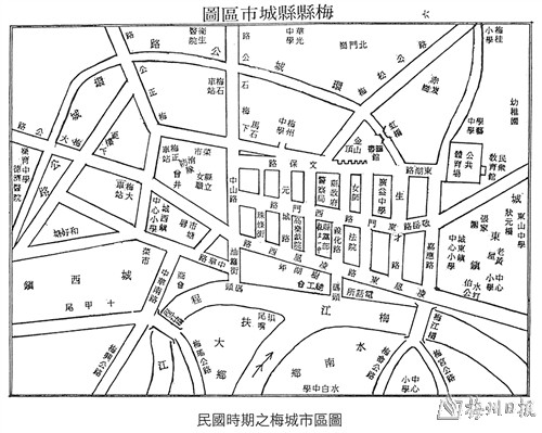一九四九年夏,笔者东渡台湾。整四十寒暑后的一九八九年秋,我首次从台返乡奔先父之丧,少小离梅老大回,与贺知章名诗“少小离家老大回,乡音无改鬓毛衰。儿童相见不相识,笑问客从何处来”之情景,何其相似哉。我的故里是梅县梅西瑶上乡琯坑村,但我生于梅城,读于梅城,离乡前大部分时光均于梅城度过,对梅城有强烈浓郁之怀念与热爱。时光飞逝,与我年龄相仿渡海来台之昔日风华少年,现均为耄耋老翁矣!兹谨琐忆昔年梅城市区风貌,略述笔者在梅城亲历之见闻琐事,如有错失之处,亟盼乡亲赐教导正。