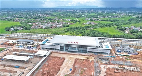 走进梅龙高铁兴宁南站的建设现场,记者看到,一座犹如“大型花灯”的建筑已经基本完工,内外部装饰装修已经接近尾声,目前正在进行清洁、收尾工作。站前综合广场的建设也在加快推进中,风雨连廊、公交车站台、左右功能用房的钢结构架目前已经完成75%以上。
