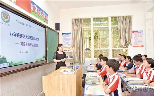 多年来,李素娥大胆转变教学理念,凝练出“四推进”单元诱导法。通过听、说、读、写等多项练习,引入话题、词汇积累、句型讲解等12个环节,把每一个单元都分成口语主题课、书面表达主题课、阅读主题课几个板块,设计小组合作、角色扮演、主题演讲等一系列教学活动,并且布置项目式作业和研究性学习任务,激发学生的学习兴趣。