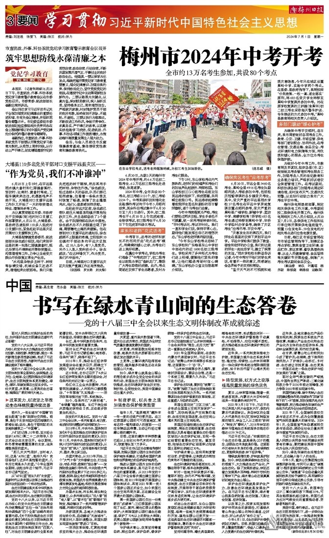 6月30日,为期3天的梅州市2024年中考开考,约6.6万名初二级考生、6.2万名初三级考生走进考场,执笔逐梦。