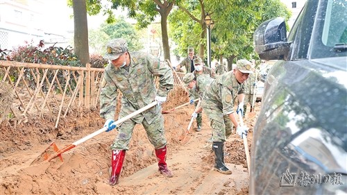 6月21日至22日,蕉岭县人武部组织民兵、本部全体人员、退伍军人、县退役军人事务局干部职工共80人,前往长潭镇长潭水库、广福镇大坝村街道和镇卫生院开展清淤排污等工作。经过不懈努力,共清淤面积约1万平方米,清理淤泥约1200立方米,清理水库大坝漂浮物8吨。
