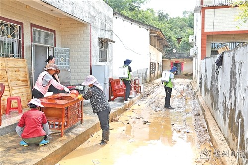 随着洪水逐渐退去,蕉岭县各级各部门迅速下沉到挂钩镇村支援灾后重建工作,全力做好清淤除障消杀工作。
