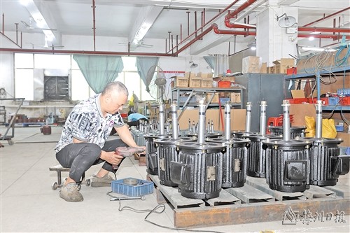 走进位于金城工业园区的蕉岭县飞扬机电有限公司,偌大的厂房里摆满了大小不一的各式生产配件,工人们正在紧张有序地组装冷却塔。“时间不等人,我们还有一批上万水吨循环量水塔订单的货物尚未赶制出来,要赶紧抢抓时间复工复产。”蕉岭县飞扬机电有限公司安全负责人丘海堃告诉记者,目前公司能生产的配件都在加班加点赶制,受洪灾影响暂时不能生产的,已通过外发急件加工方式解决。