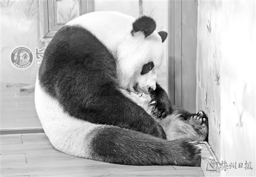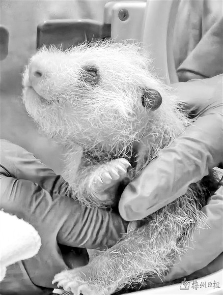 7月2日,广州长隆大熊猫三胞胎“萌萌”产下的幼仔接受体检。