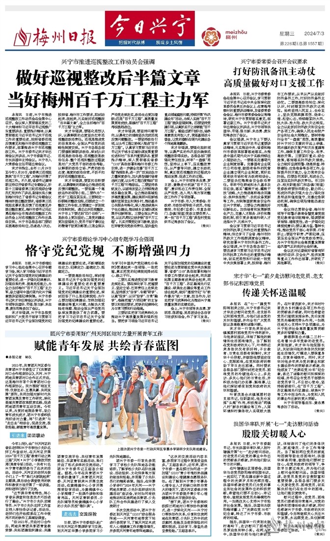 2023年,共青团天河区委与共青团兴宁市委签订了《共青团对口合作框架协议》,天河、兴宁两地共青团对口合作正式开启,这是梅州市首个共青团对口合作框架协议。双方围绕“相互支持、优势互补、互惠共赢、共同发展”原则,共同加强对新时代共青团发展及青年工作研究,深化县域共青团改革探索实践,促进两地团员青年互动交流。今年以来,为更好地服务青年,助力青年成长成才,团兴宁市委积极用好结对力量,将“引进来”与“走出去”相结合,促进交流,汲取经验,赋能青年高质量发展。